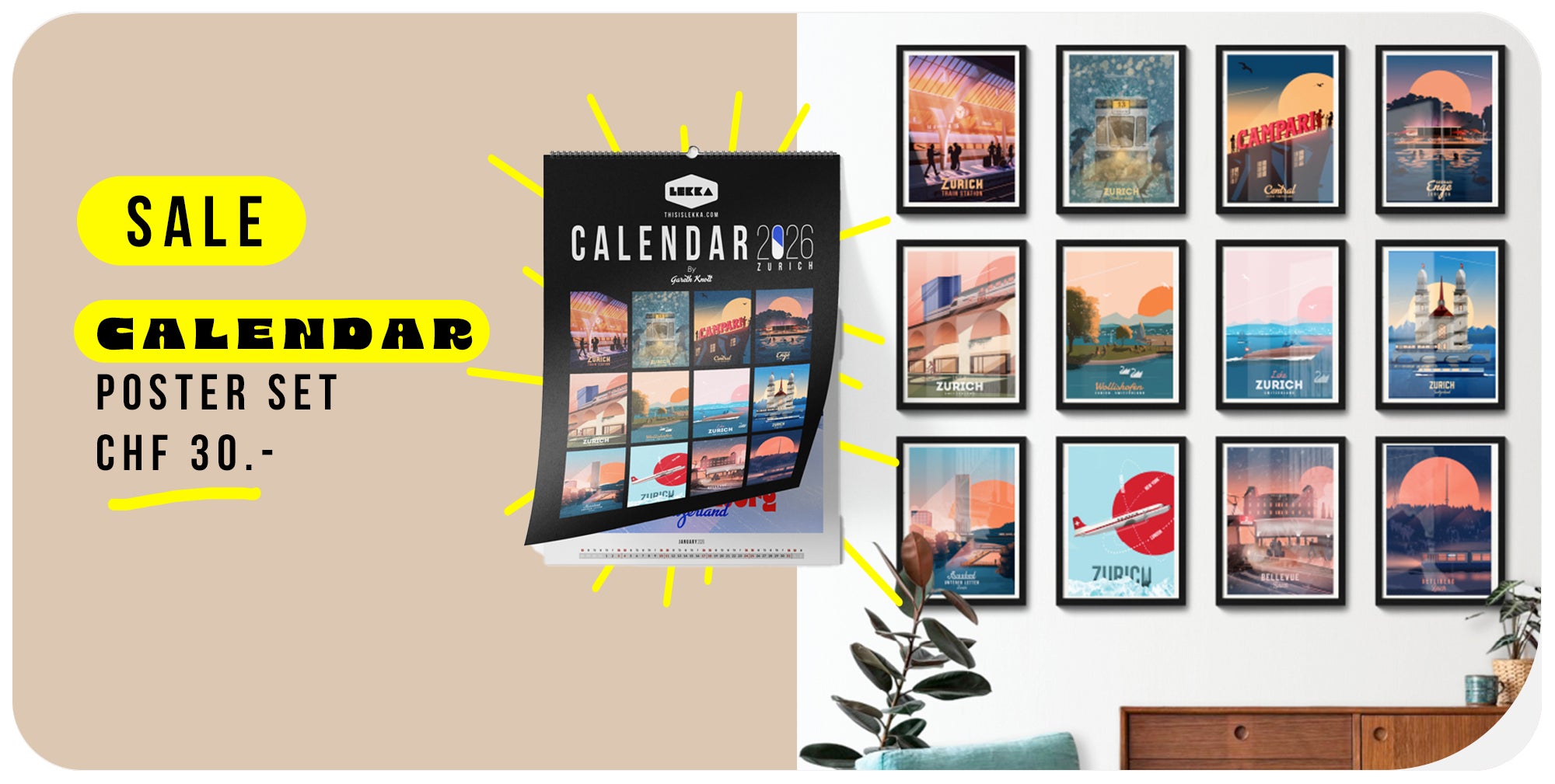 The calendar is designed so that you can cut out each month and frame it as a poster. You get 12 small posters for only Chf30.-