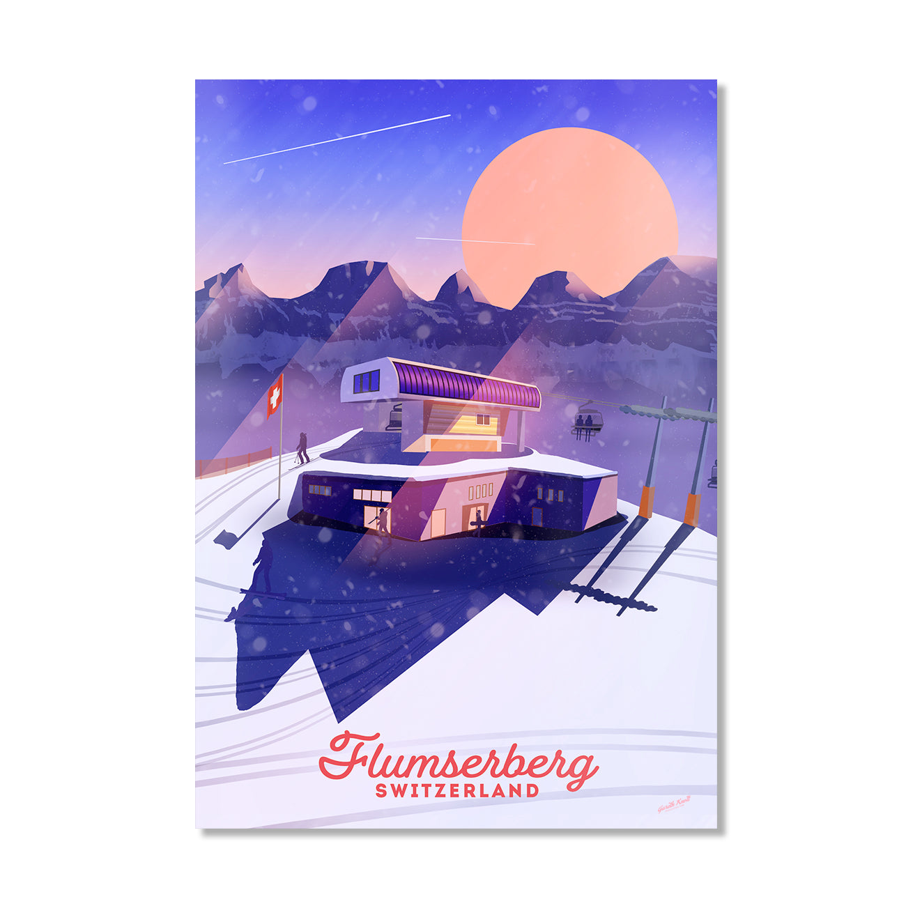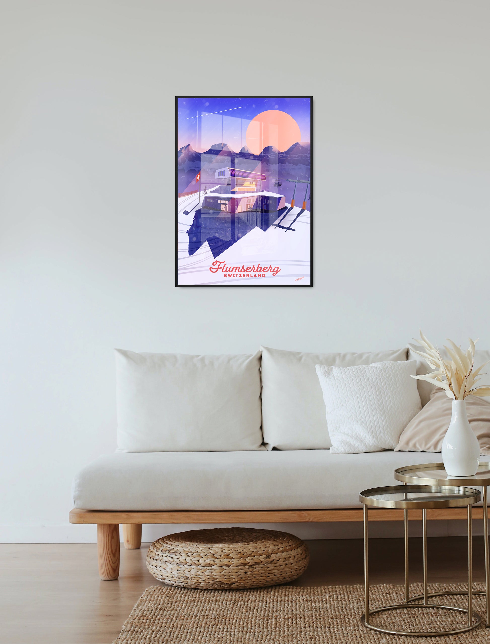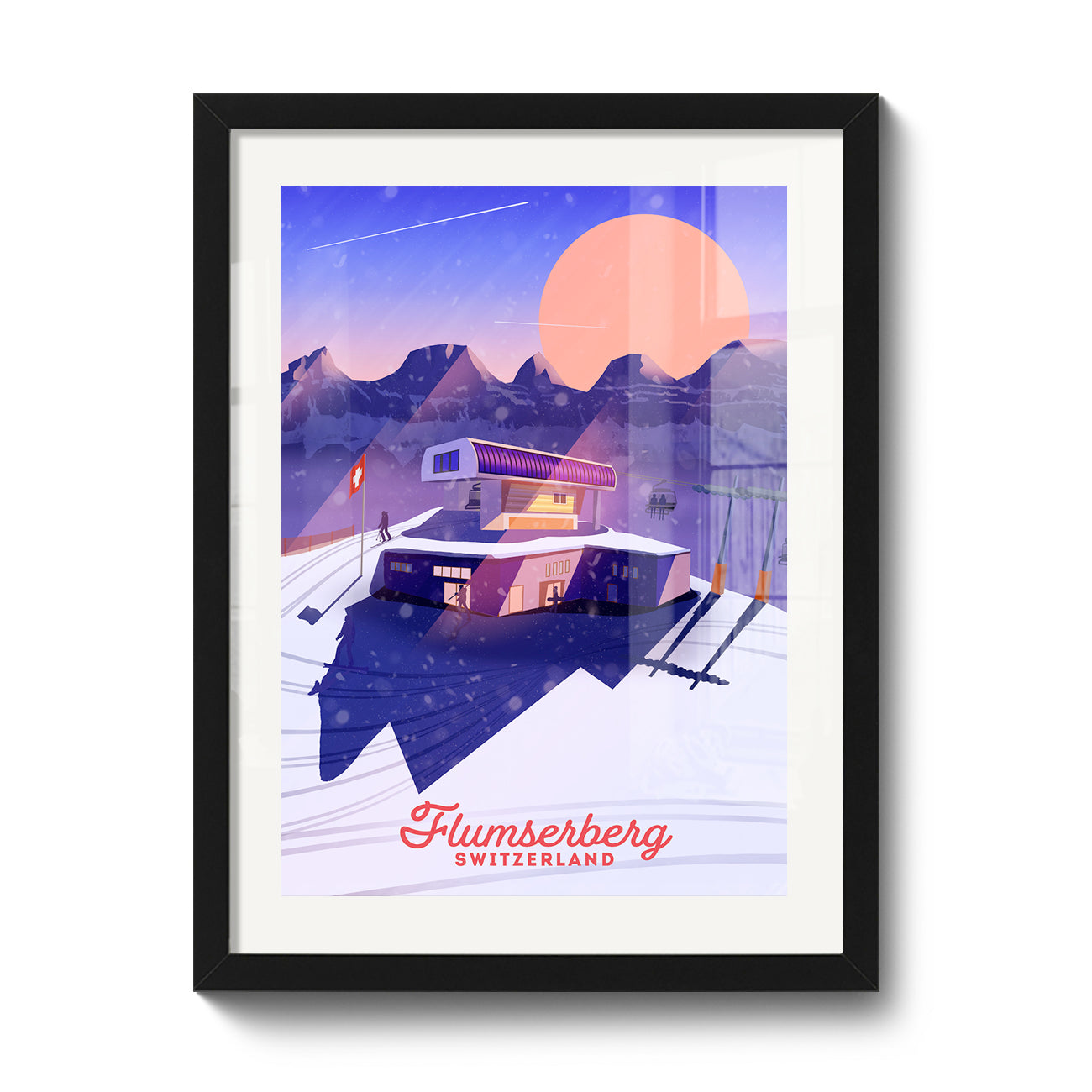 Flumserberg: A beautiful Scene of the modern cable way and the large valley in the background.