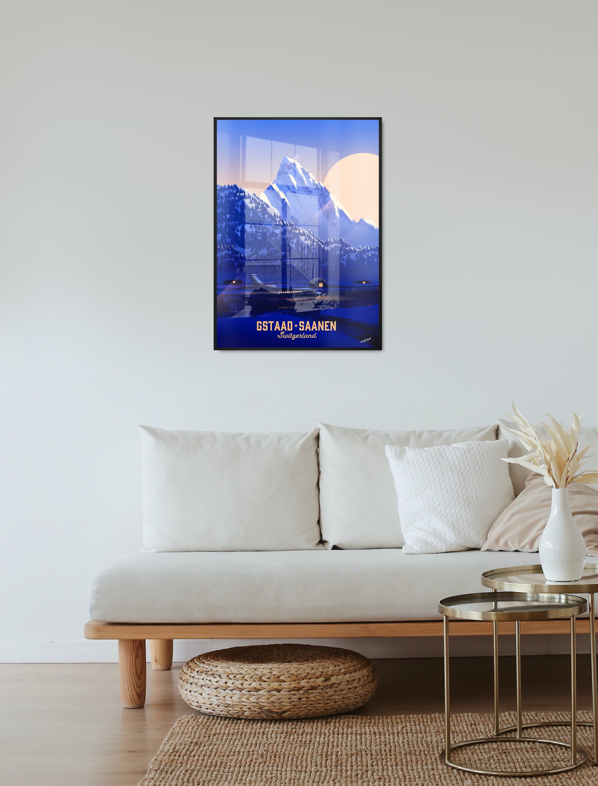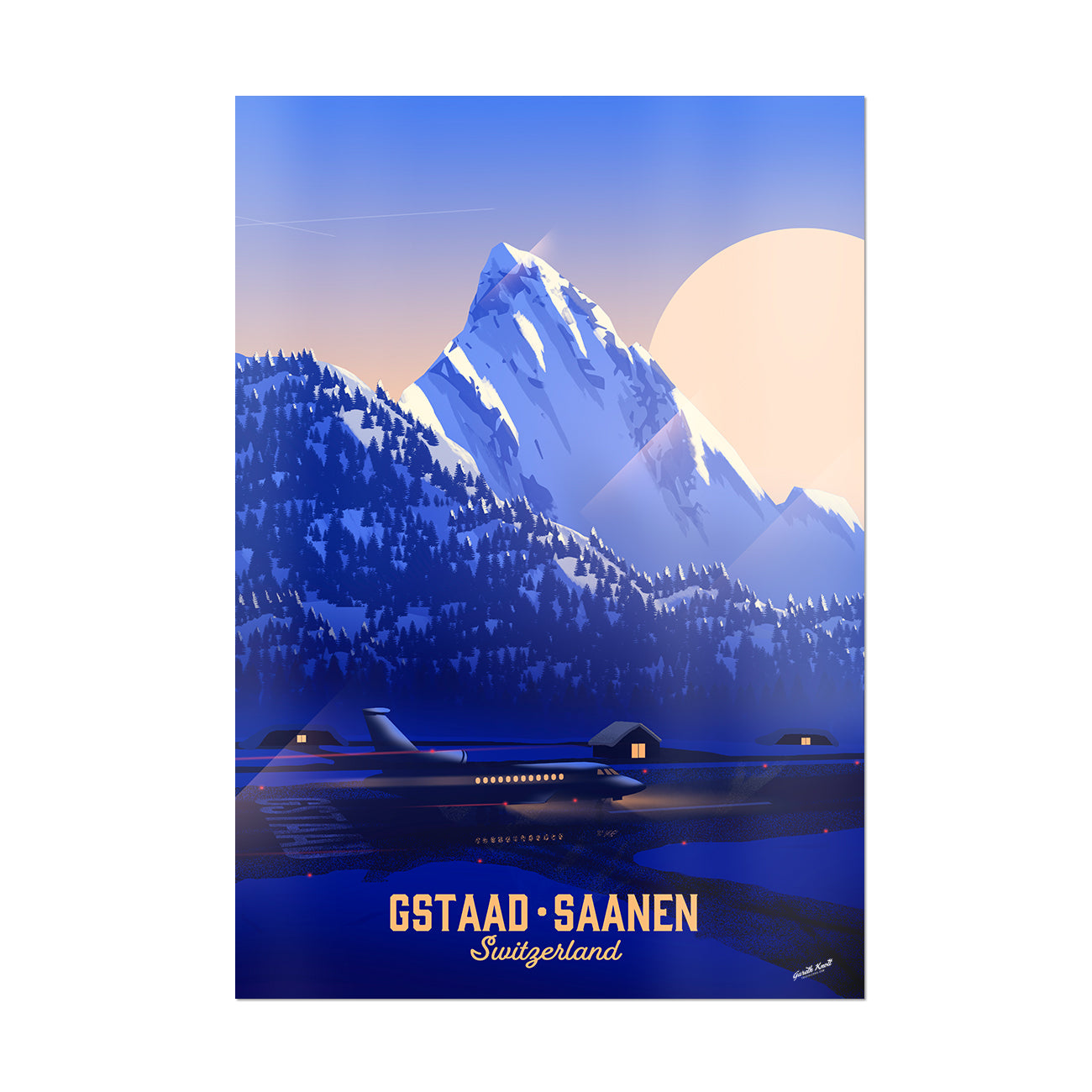 Gstaad Ruebli illustration captures an early morning with new visitors flying in for the Christmas season.
