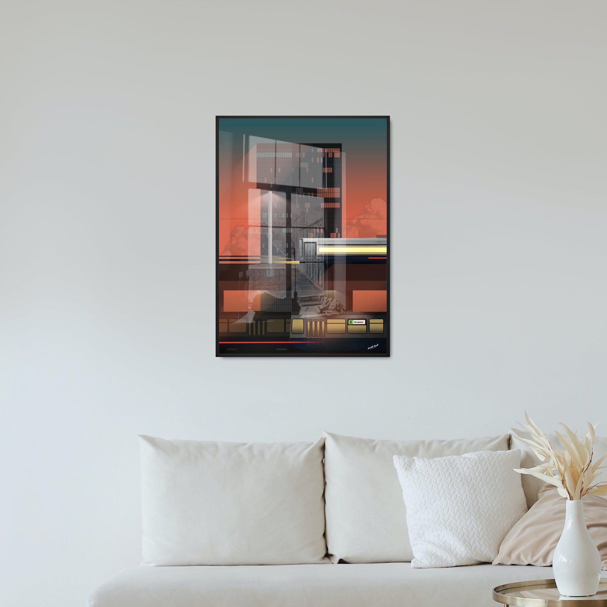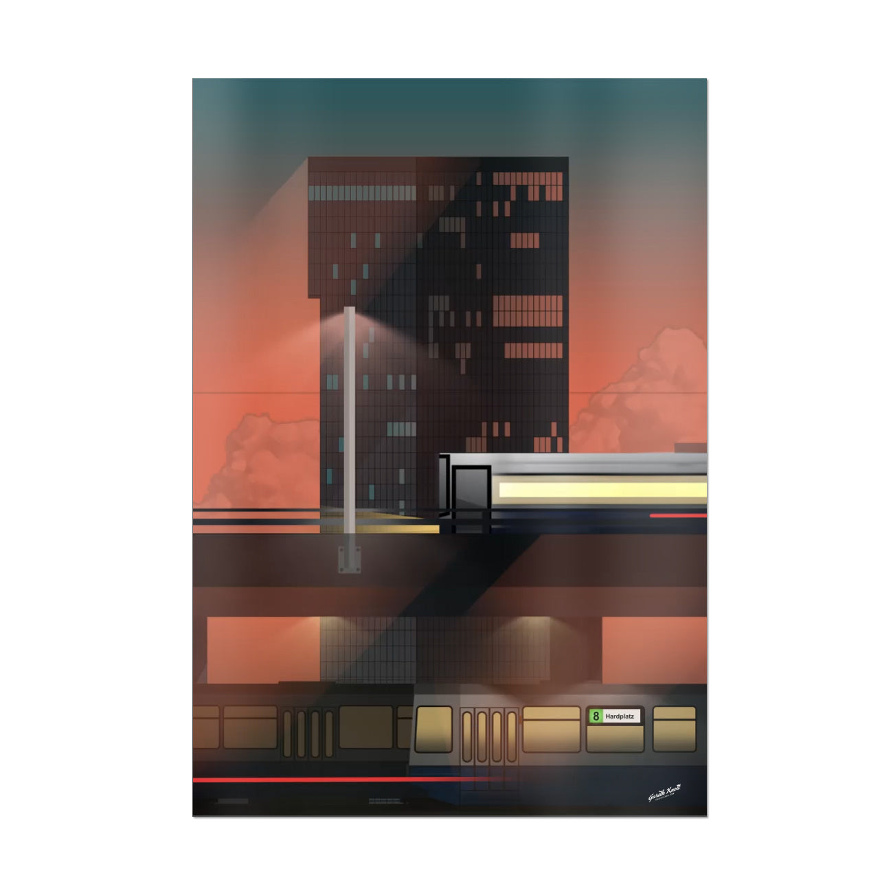 The hussle and bussle of Hardbruecke is captured in this print as the Sun goes down.